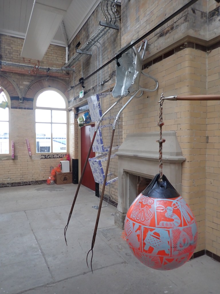 An Andi Dakin exhibition of Sculpture with Printmaking embellishment at The Old Parcels Office Art Space in Scarborough. Much of my work over the past two years has a had connections with Fire or Water. Fire and Water were two essential components required to generate steam, used to power trains in and out of Scarborough Railway Station. During the months leading up to my exhibition, the characterful exhibition space influenced the way my sculpture ideas were realised.