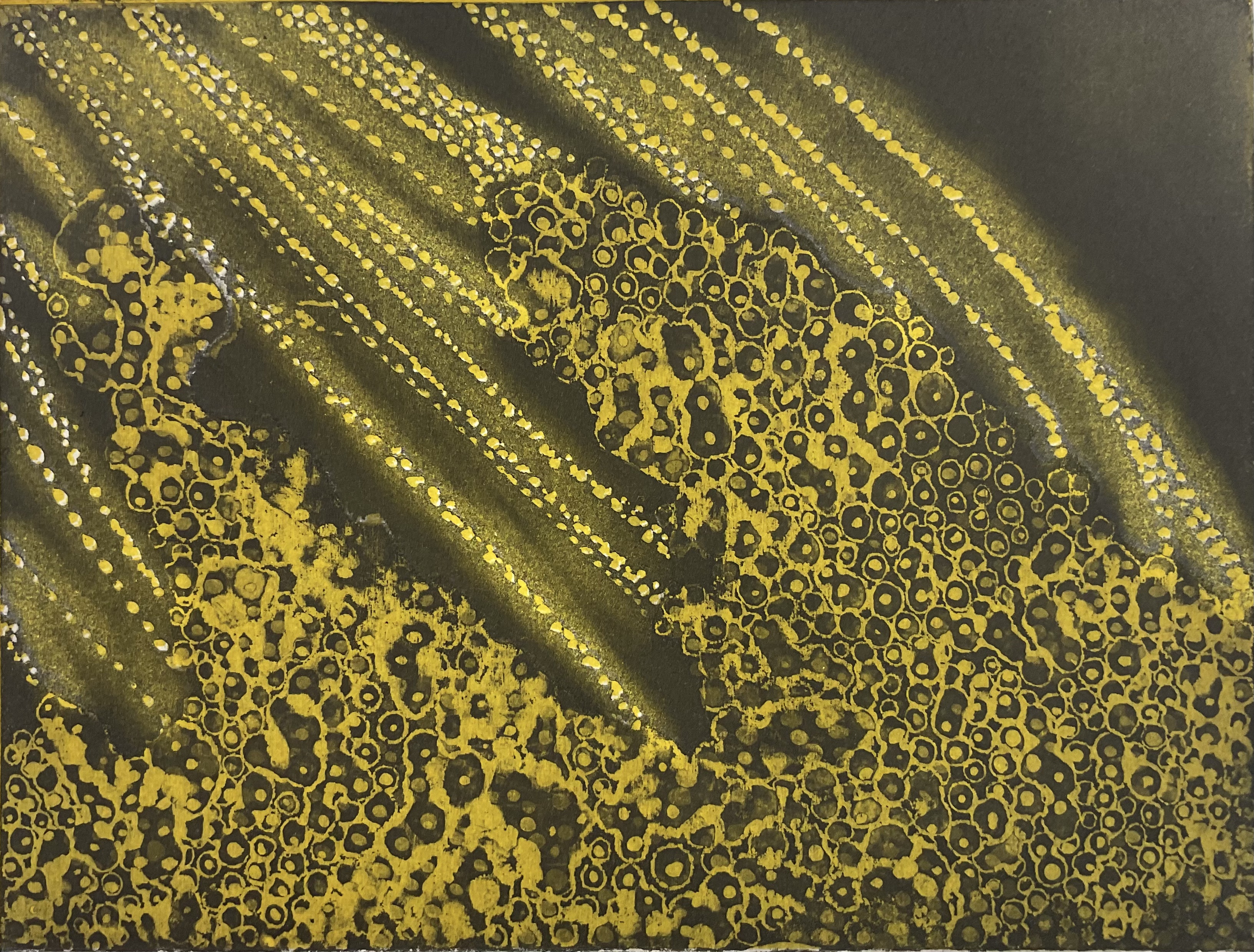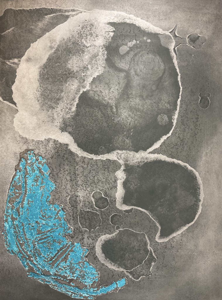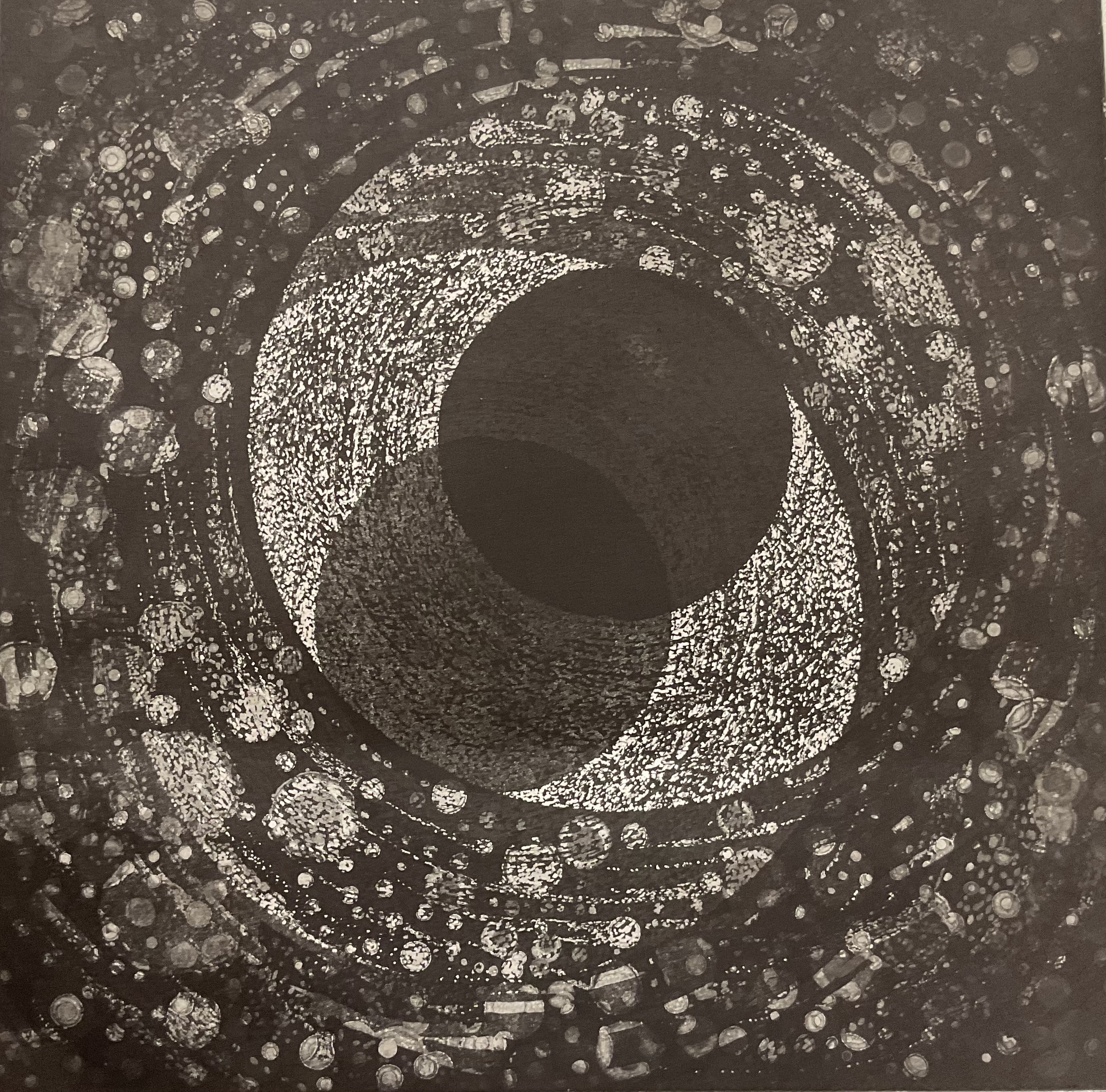 Through my Printmaking, especially my Acid Etchings, I experiment with techniques and explore ways of representing events in the infinite cosmos: occurrences from the distant past or speculative phenomena yet to happen.
